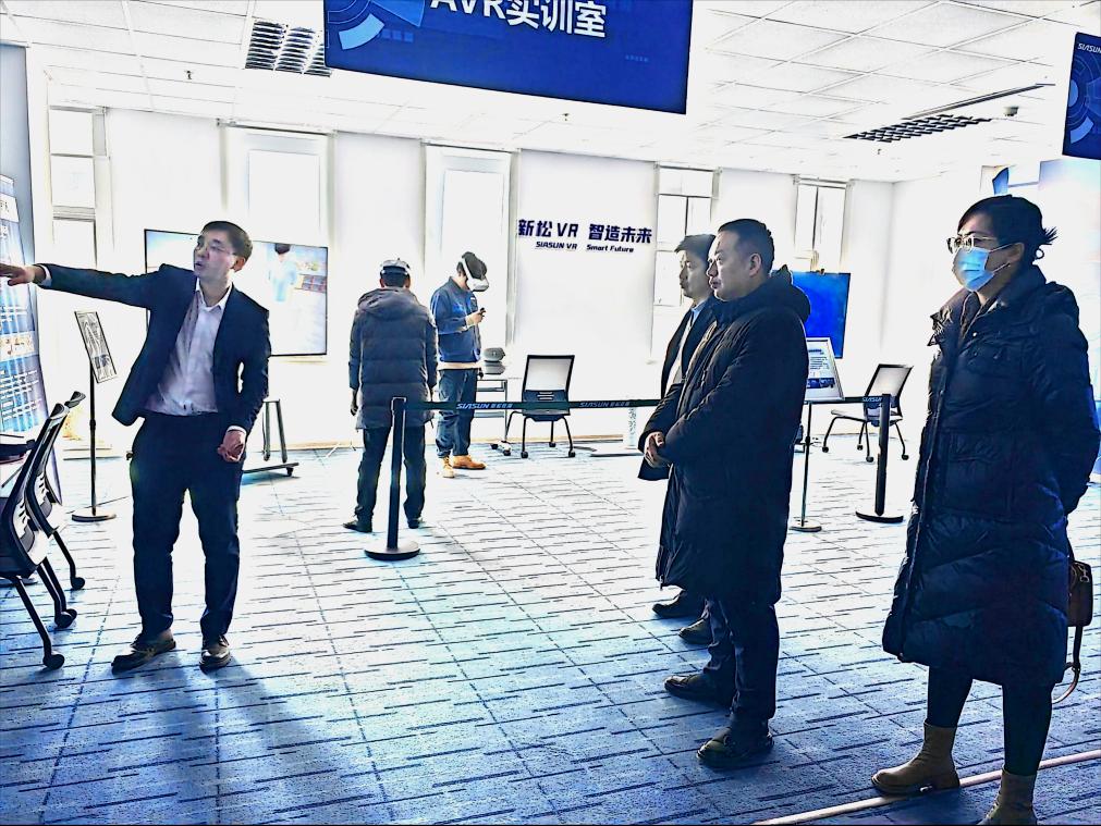 王伟院长一行人在新松教育科技集团高教部部长赵梦溪的陪同下先后参观了新松智慧产业园、新松产教融合基地。新松市场运营部部长李扬就新松主打产品、核心技术及新松愿景进行了介绍;工业机器人技术负责人张海鹏及相关工程师就教育培训基地做了讲解。